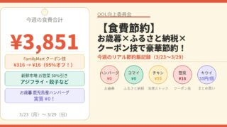 節約 【食費節約】お歳暮×ふるさと納税×クーポン技で豪華節約!今週のリアル節約飯記録(3/23〜3/29)