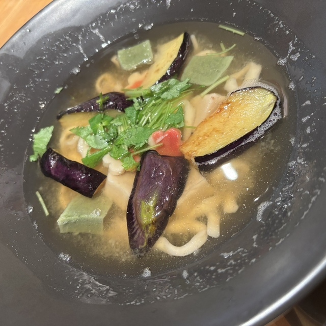 玉ねぎ、なす、ピーマン、舞茸、しめじの中華スープ